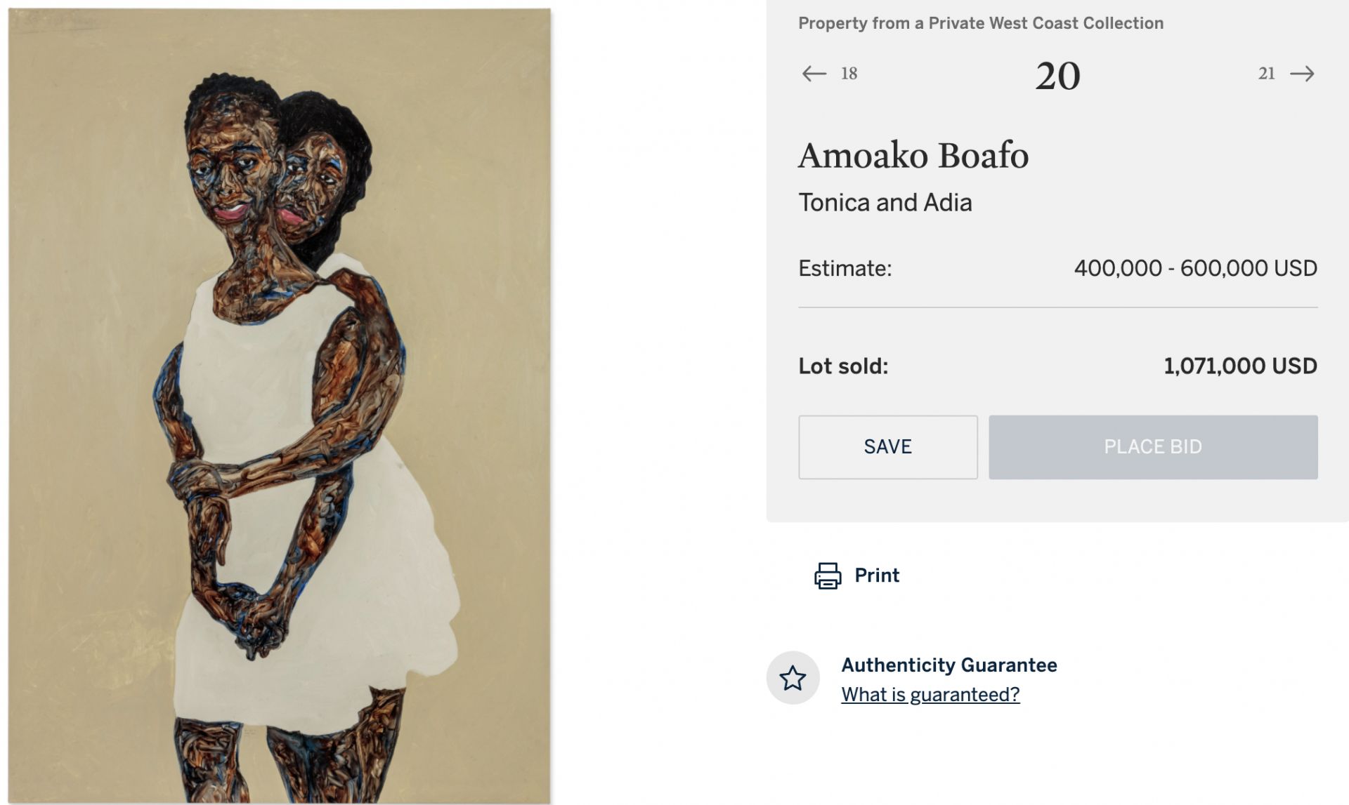 또 이번 수상으로 시장에서도 흑인 여성 작가의 작품을 대거 내놓았는데요. 최근 소더비의 경매에서는 '흑인 작가 작품'만 모아 경매를 열기도 했습니다. 소더비 역사상 처음 있는 일이었다고 해요.